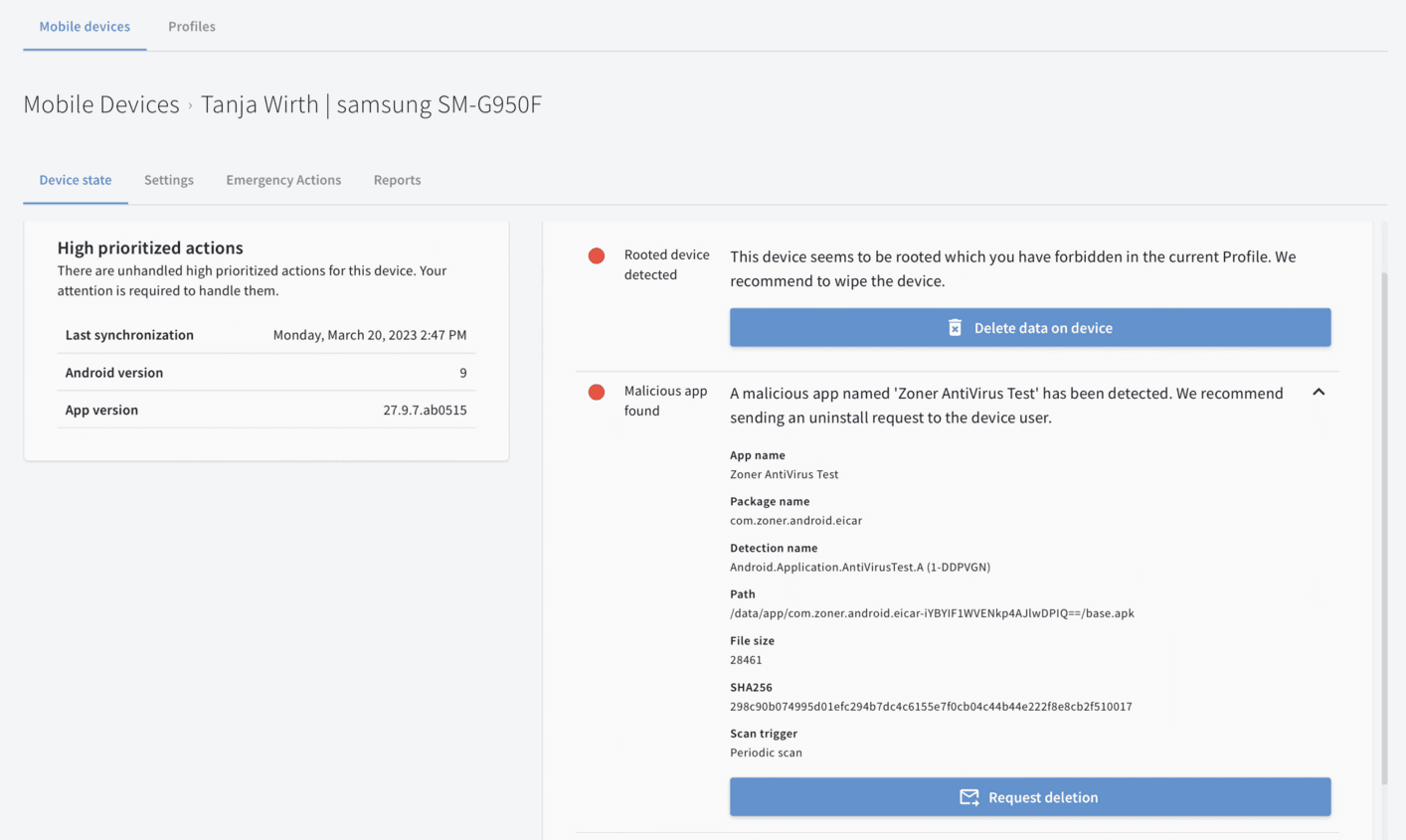 Setați alerte cu un singur clic pentru a vă avertiza când un dispozitiv mobil a fost rootat.