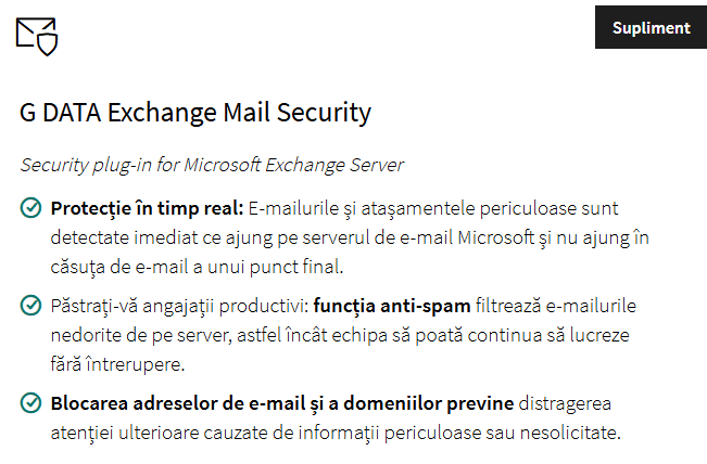 Programele noastre de completare Endpoint Protection filtrează aceste amenințări cât mai devreme posibil, începând de la nivel de server și gateway.